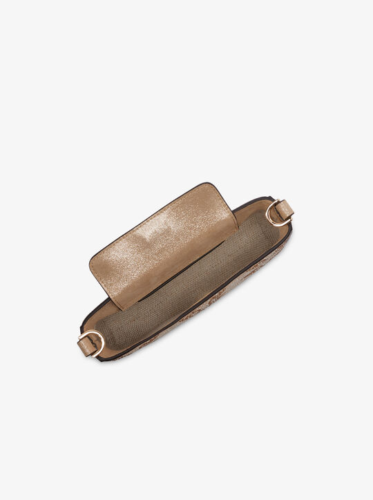 حقيبة براينت الصغيرة، قطعة الإكسسوار المثالية التي يمكنكِ حملها في أي مكان، تتحول من حقيبة كروس إلى حقيبة معصم، ثم تعود إلى حقيبتك بفضل حزامها القابل للفصل. مصنوعة من جلد محبب معدني، ومُزينة بمقبض علوي من سلسلة معدنية لمزيد من الأناقة واللمعان.