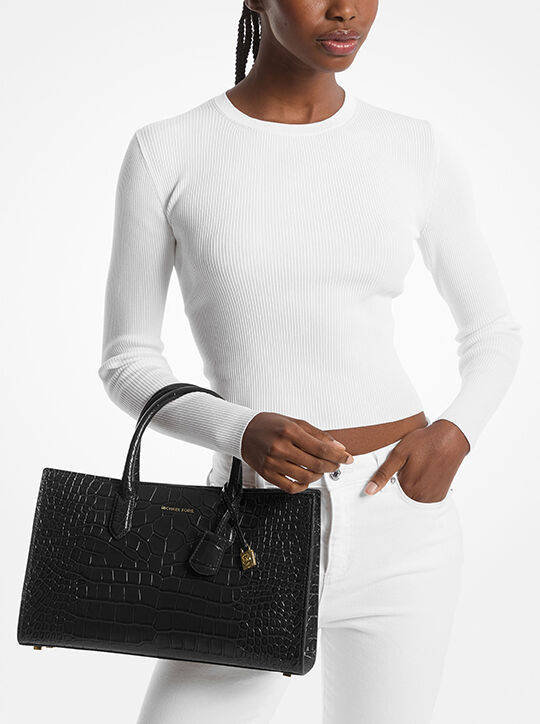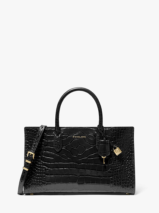 Michael Michael Kors حقيبة سكارليت متوسطة الحجم من الجلد اللامع المنقوش بنقشة جلد التمساح