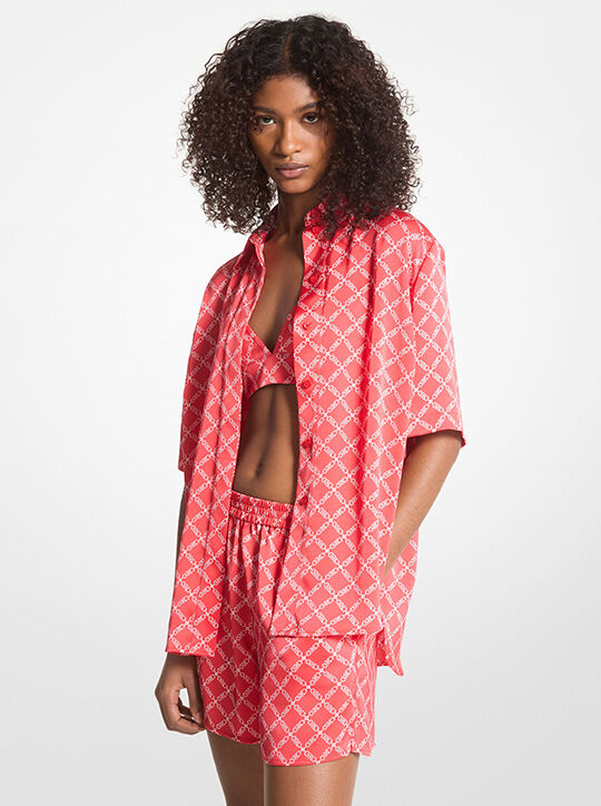 Michael Michael Kors قميص كامب ساتان مطبوع عليه شعار إمباير