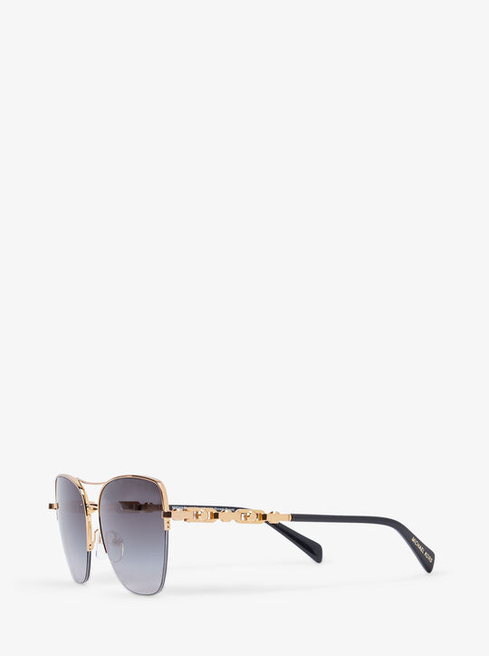 Polished metallic frames and a squared cat-eye shape give our Dorado Beach sunglasses a laid-back-luxe feel, while chain-link detailing along the arms adds a touch of texture.