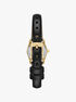 A luxe leather strap and gold-tone hardware come together on our elegant Lexington watch. With an intricately etched topring and miniature round profile, it makes a dainty addition to a shimmering wrist stack.