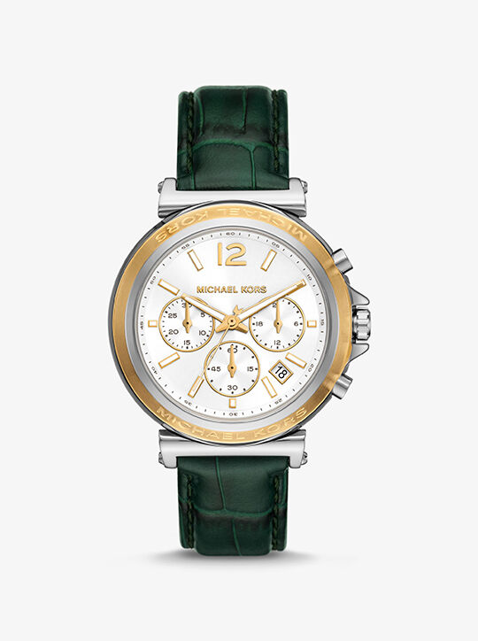 Michael Michael Kors Oversized Maren Silver-Tone and Crocodile Embossed Leather Watch