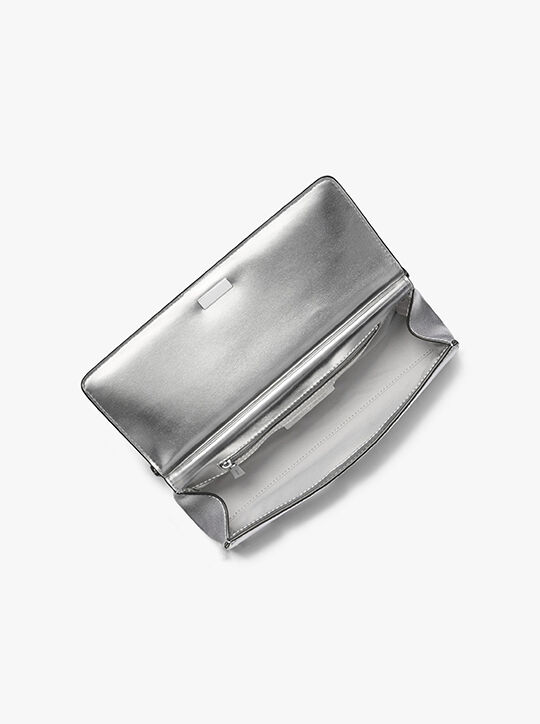 Meet the ultimate night-out accessory: our Carmine pochette. Crafted from metallic pebbled leather, this vintage-inspired style is anchored by a bold chain-link strap that can be worn on the shoulder or tucked inside to be carried in hand. Match your jewelry to the hardware for a glamorous look.