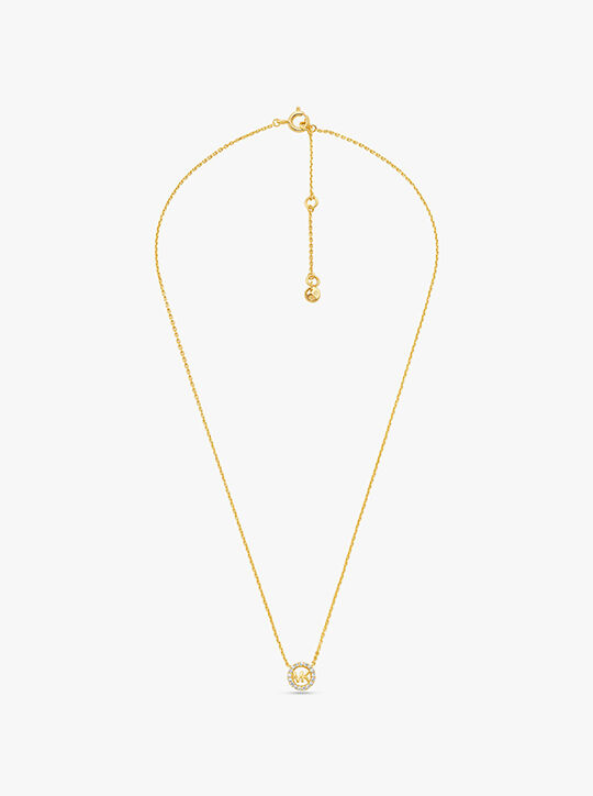 Michael Michael Kors Fulton Precious-Metal Plated Sterling Silver Pavé Logo Charm Necklace
