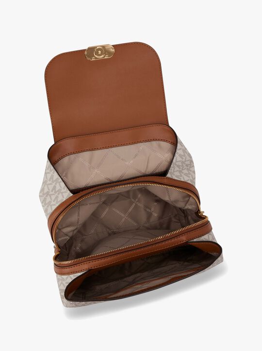 • Backpack • Logo-print canvas • 89.4% coated canvas/9.6% polyester/1% polyurethane • Trim: 60% polyurethane/20% cotton/20% polyester • Gold-tone hardware • 10”W X 11.5”H X 5.75”D • Handle drop: 2.25” • Adjustable straps: 13.75”-16.5” • Exterior details: front zip pocket • Interior details: back zip pocket, center zip compartment, front slip pocket • Lining: 100% polyester • Zip fastening • Imported