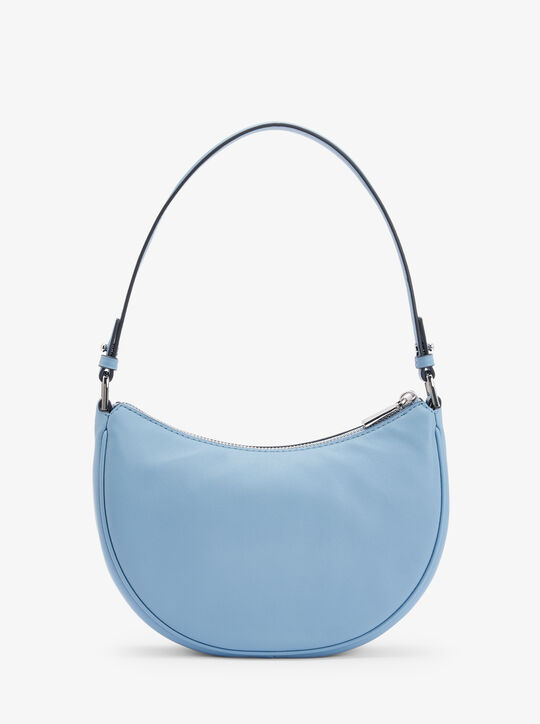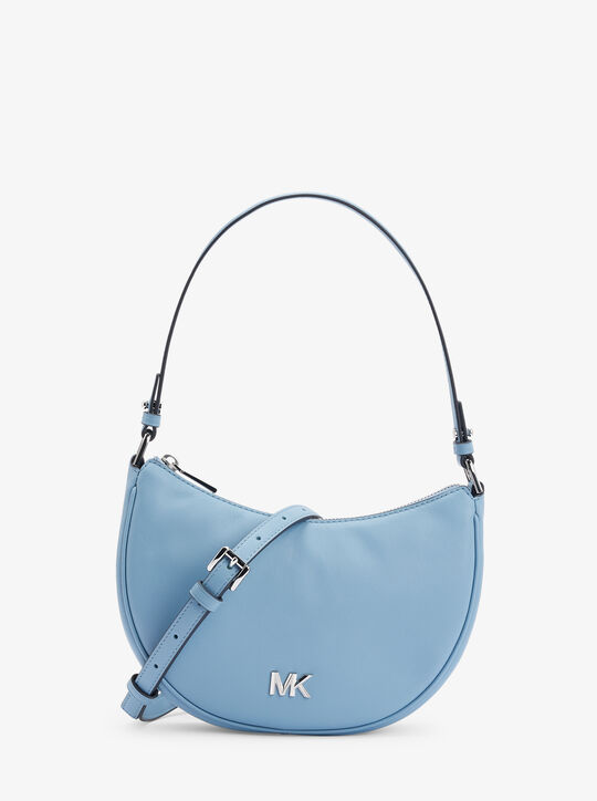 This chic half-moon Kyla pochette is made from supple leather and punctuated with silver-tone MK hardware. Slip the slim silhouette on your shoulder for a night out, and use the optional crossbody strap to keep your hands free for a day on the go. Either way, it’s sure to earn compliments.