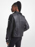 Look cool while keeping warm with this sporty spin on a classic peacoat. Made from recycled satin ciré, the double-breasted silhouette is padded for comfort and finished with a pointed collar. Silver-tone hardware and logo-embossed buttons add a final hint of shine.