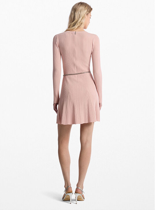 This classic fit-and-flare dress is designed to flatter with its figure-skimming knit construction and detachable chain-link belt. Take it from day to night with block heels and a structured bag.