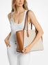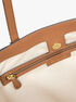 The Taryn tote is a polished staple for workdays, weekends, and every moment in between. Crafted from our Signature logo-print canvas with leather trim, this structured bag features trapeze stitching and a detachable lock charm. It unzips to reveal a spacious interior, complete with side pockets and a center compartment for your tablet or valuables.
