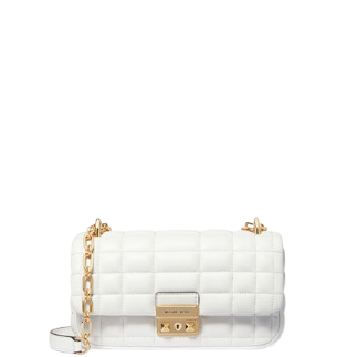 DIMENSIONAL QUILTED LEATHER, LUXE HARDWARE, VIVID COLORS-THE TRIBEC BAG IS EVEN BETTER UP CLOSE.